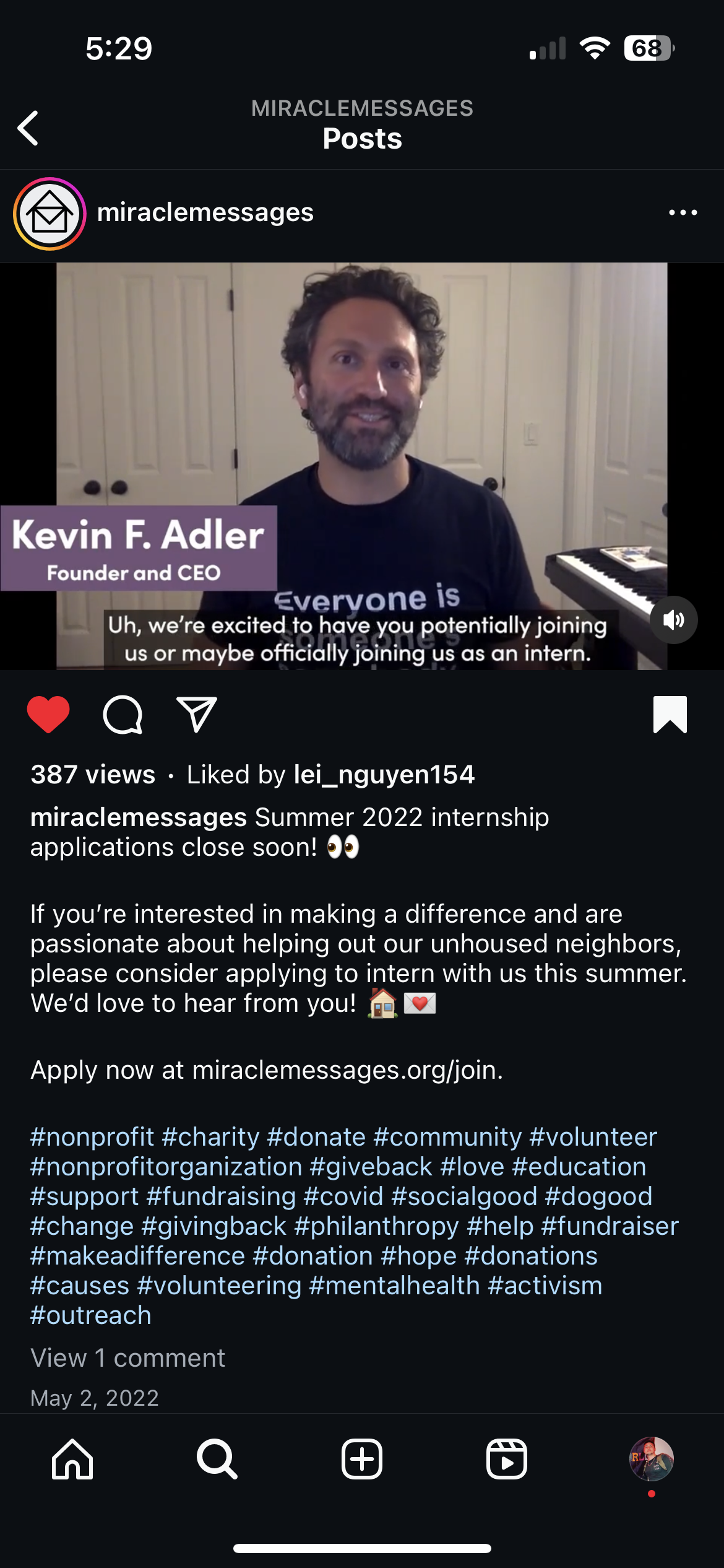 Summer 2022 Internship recruitment video produced for Miracle Messages’ Instagram. Provides reel of testimonies from board members and interns about environment and growth opportunities within the organization.
