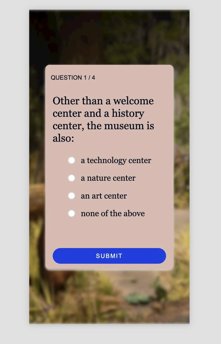 Designed a scenario-based learning module through Adobe Captivate as a prototype of a learning management system being implemented into a history museum. Presented an interactive video showcasing the museum followed up with multiple choice questions, simulating the module requiring museum visitors’ completion before taking part in a guided tour.